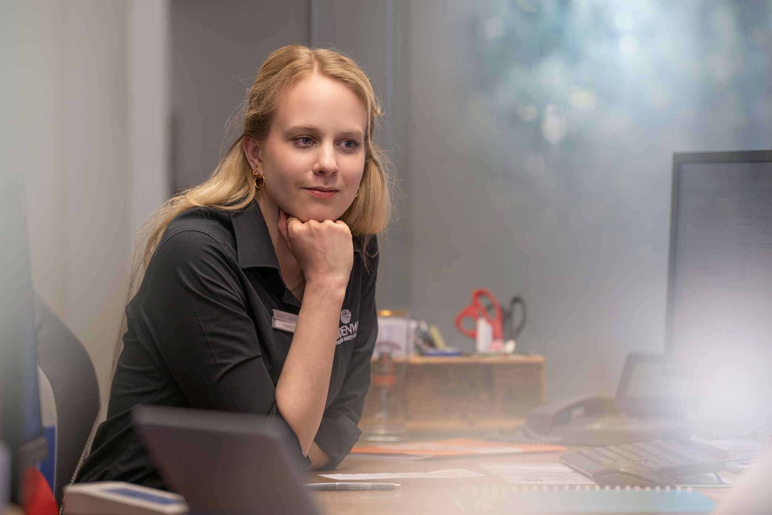 Es war Liebe auf den ersten Blick. Als vor sechs Jahren ihr erster Tag als auszubildende Hotelfachfrau zu Ende ging, war Franziska begeistert. „Ich habe mich sofort willkommen gefühlt“ erzählt die Chef-Rezeptionistin im Lindenwirt „und daran hat sich bis heute nichts geändert“. Sie fungiert als Schnittstelle zwischen Personal und Chefetage, organisiert die Buchungen und hilft Gästen weiter, die das WLAN-Passwort vergessen haben oder eine Wanderung buchen möchten.